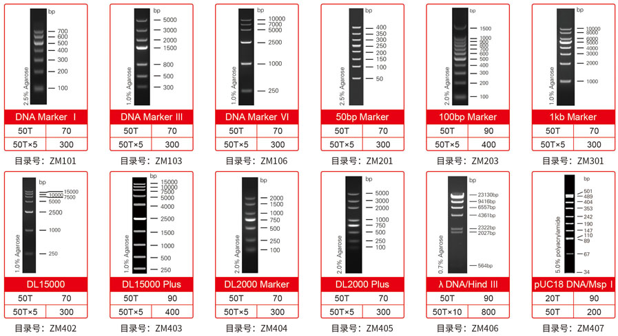 更多Marker:DNA MarkerⅠ、DNA Marker Ⅱ、DNA Marker Ⅲ、DNA Marker Ⅳ、DNA Marker Ⅴ、DNA MarkerⅥ、DNA Marker Ⅶ