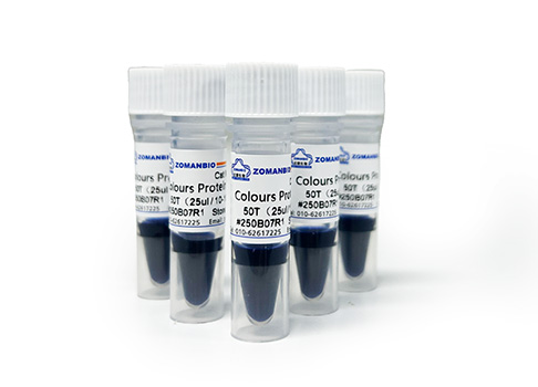 本產(chǎn)品由10-180 kDa的10種純化的天然蛋白混合而成,其中70 kDa為橙紅色蛋白條帶,10 kDa為綠色蛋白條,方便判斷各個條帶的準(zhǔn)確位置。產(chǎn)品適合作為SDS-PAGE電泳時變性蛋白樣品的分子量參照,并可實(shí)時觀察蛋白樣品的電泳分離狀況,也可用于檢測Western blot的轉(zhuǎn)膜效率。由于共價結(jié)合的染料會影響蛋白質(zhì)分子的電泳遷移率,本產(chǎn)品僅適于粗略地估計(jì)目的蛋白樣品的分子量。