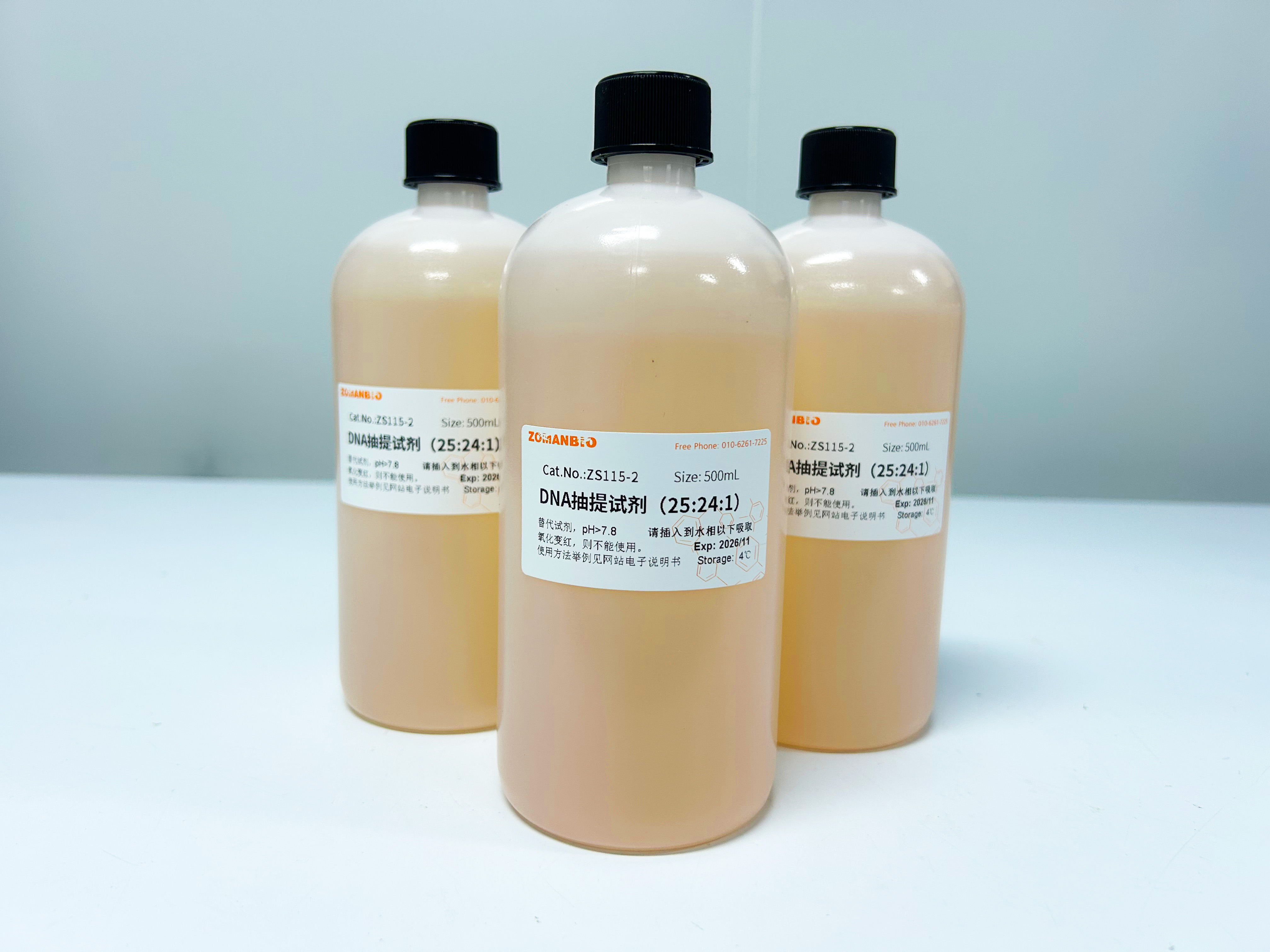 通過DNA抽提溶液(25:24:1)抽提作用,可去除樣品中蛋白、多糖、酚類等雜質(zhì),再加入乙醇或異丙醇等沉淀核酸即可使DNA分離出來。該抽提溶液可以使蛋白質(zhì)變性,同時利用RNA、DNA、蛋白質(zhì)三者的性質(zhì)差別來分離DNA。抽提離心后的上層為含DNA的水相,中間為變性蛋白相,下層為有機(jī)溶劑相。該試劑僅用于科研領(lǐng)域,不適用于臨床診斷或其他用途。