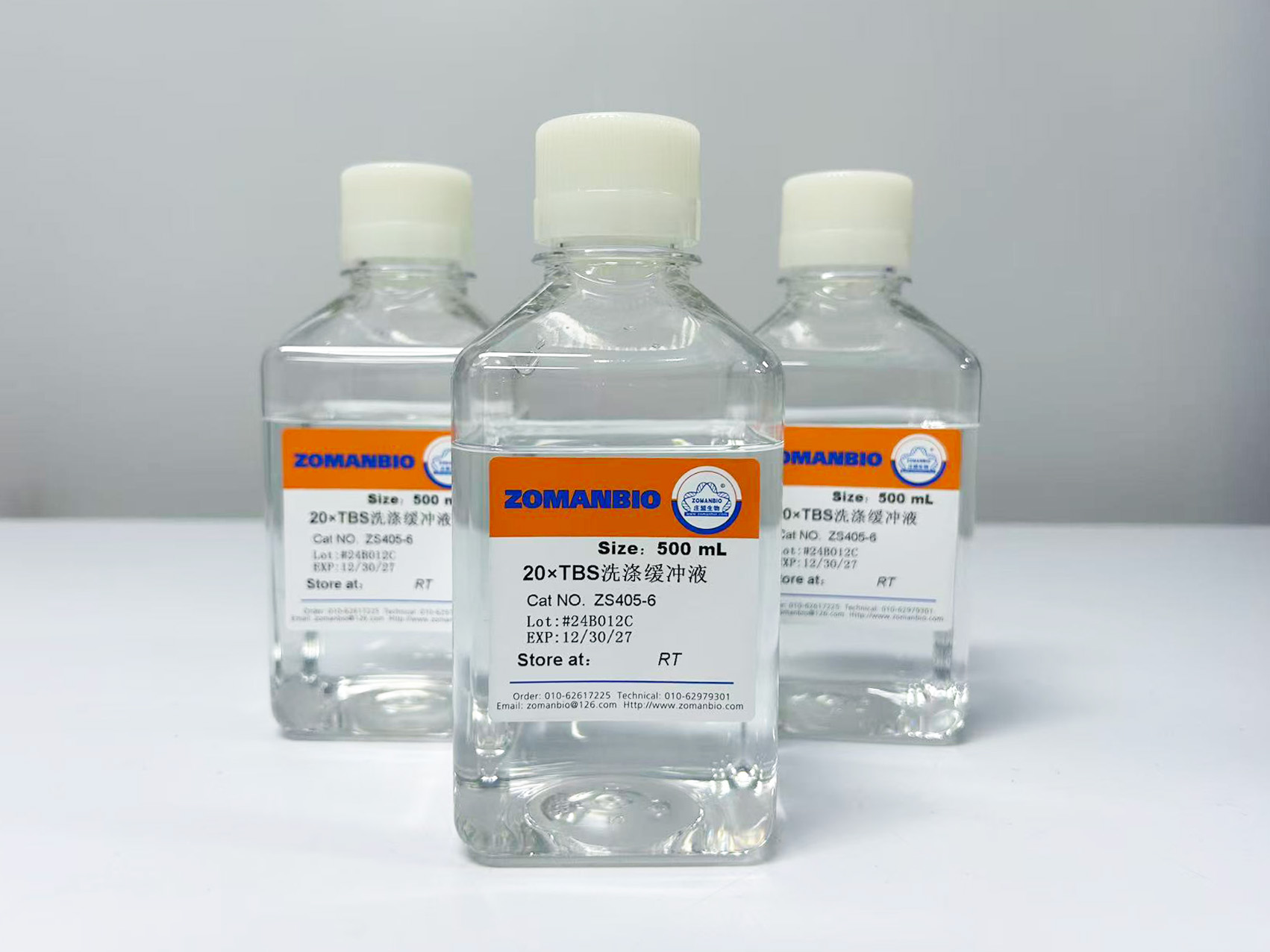 TBS緩沖液是生物學中常使用的等滲Tris 緩沖鹽溶液,pH=7.6±0.1,主要用于免疫組化和原位雜交,酶聯(lián)免疫等實驗中,清洗免疫印跡實驗中非特異性結合的抗體等。TBS由Tris-HCl構成穩(wěn)定的pH緩沖體系,由NaCl提供等滲條件。