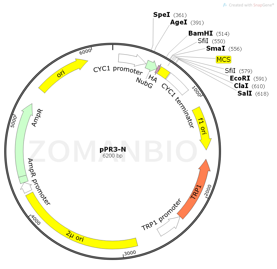 pPR3-N是一個用于膜蛋白酵母雙雜交實驗的質(zhì)粒。The DUALmembrane system is intended for the detection and identification of interactions involving integral membrane proteins and membrane-associated proteins in yeast. The DUALmembrane pairwise interaction kit enables you to: