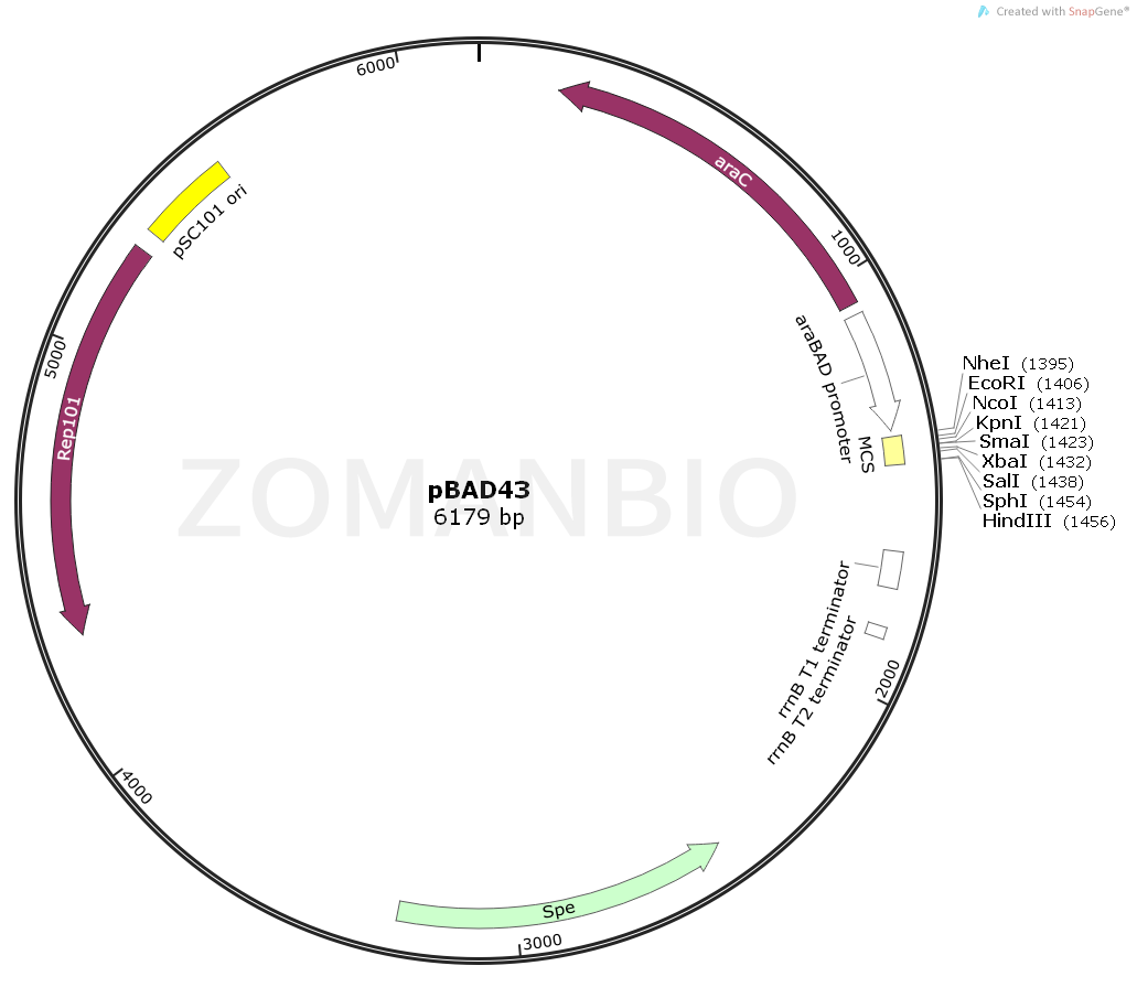 pBAD43是一個大腸桿菌pBAD系列表達(dá)質(zhì)粒。