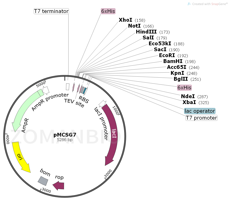 質粒序列請下載:ZK1612 pMCSG7大腸表達質粒.txt