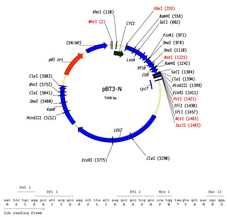 pBT3-N是一個(gè)膜蛋白酵母雙雜交質(zhì)粒。