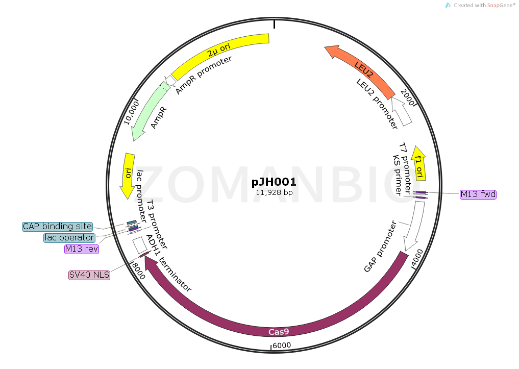 pJH001是一個酵母CAS9表達基因敲除質(zhì)粒。