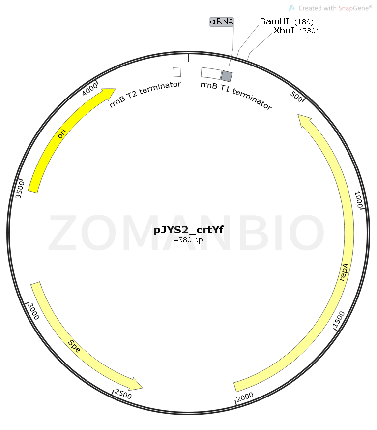 pJYS2_crtYf是一個(gè)大腸桿菌gRNA表達(dá)質(zhì)粒。