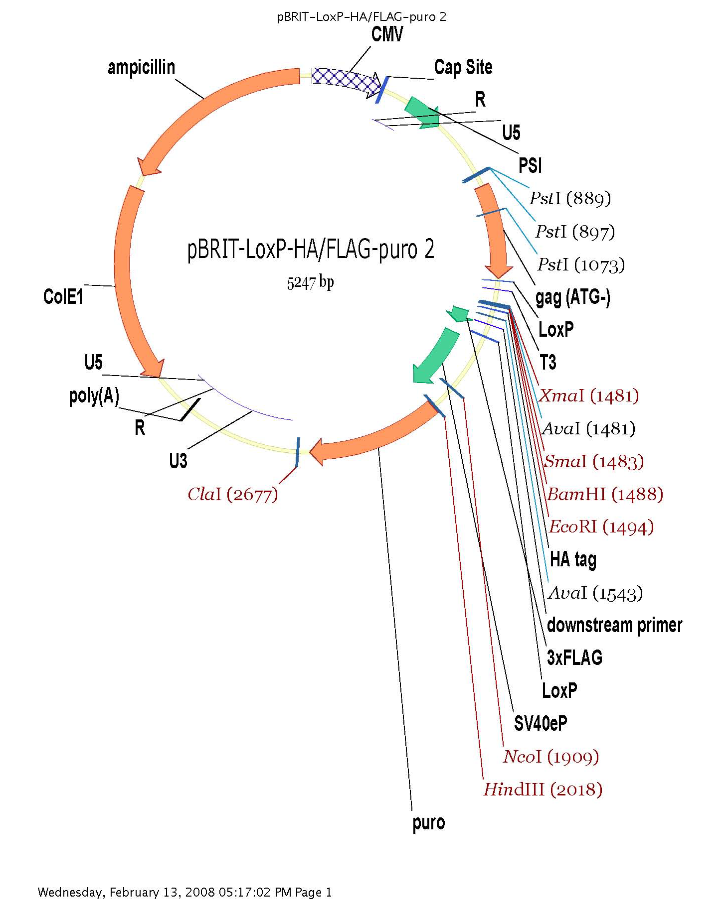 pBRIT HA-Flag是一個(gè)哺乳細(xì)胞逆病毒Loxp質(zhì)粒。