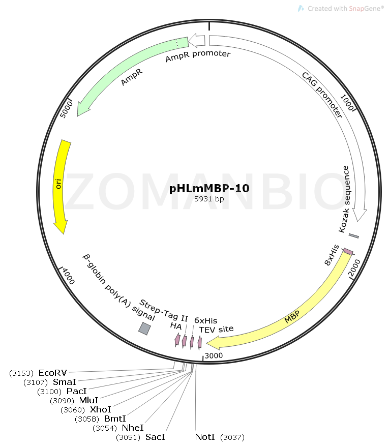 pHLmMBP-10是一個哺乳細胞蛋白表達質(zhì)粒。