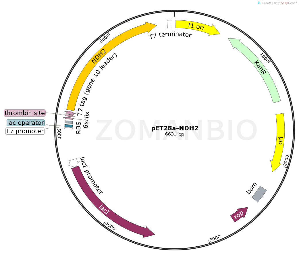 質(zhì)粒序列請下載:ZK2046 pET28a-NDH2質(zhì)粒.txt